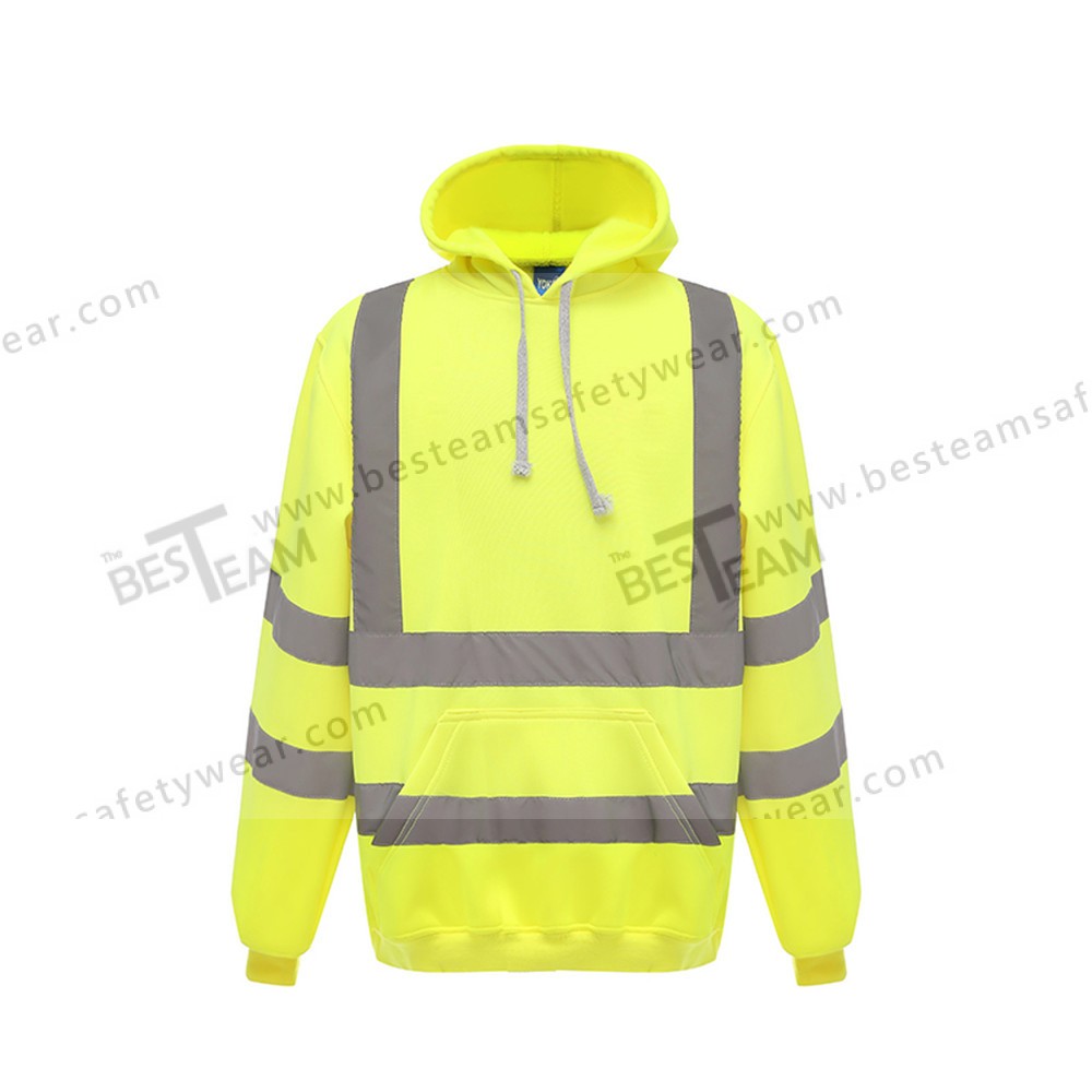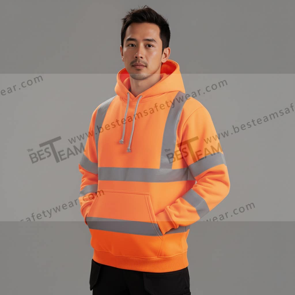 連帽反光工程衛衣,採用280g舒適抓絨布料,搭配高亮反光條與螺紋收口設計,符合EN ISO 13688安全標準,適用夜間施工、交通管制與倉儲搬運,守護工作安全。