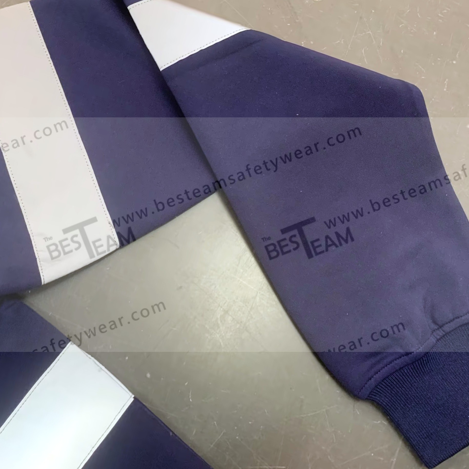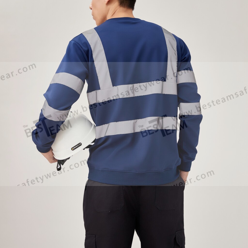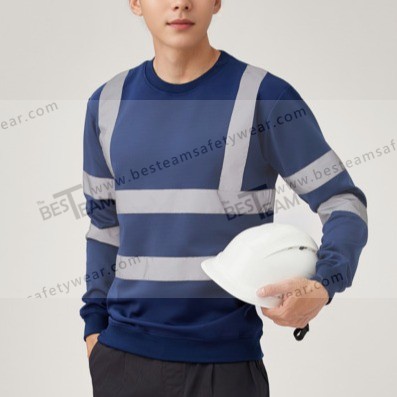 長袖圓領反光安全工衣是一種提供夜間安全防護的長袖工作服,主要特色是其圓領設計,方便穿脫,以及在衣物上結合了反光材料,能在夜間或低光源環境下反射光線,增加穿著者的可見度與安全性。 工衣由運動針織布料製成,以確保長時間穿著的舒適度與耐用性,可依據不同行業的需求進行客製化,例如加入口袋、筆插等配件,並可透過印刷、電繡等方式印上公司標誌,以展現專業形象。
